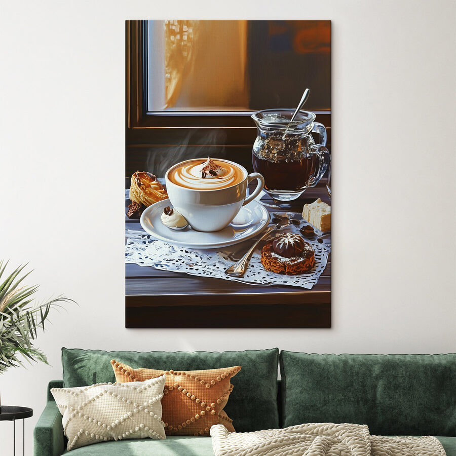 Imaginați-vă această scenă fermecătoare – o ceașcă confortabilă de cafea și un ulcior elegant de ceai, perfect pentru diminețile leneșe sau după-amiezele relaxate. Culorile calde și primitoare aduc un sentiment de confort, ca un vechi prieten care împărtășește povești la un patiserie. Imaginați-vă-o pe peretele unei bucătării, stârnind bucurie de fiecare dată când cineva trece pe lângă ea. Este genul de artă care șoptește “relaxați-vă” în timp ce vă sorbiți cafeaua preferată. Fie că este pentru o bucătărie, o sufragerie sau chiar un colțișor confortabil, adaugă acel plus de căldură și farmec. Pentru că, să fim sinceri, cui nu-i place un moment bun de cafea?