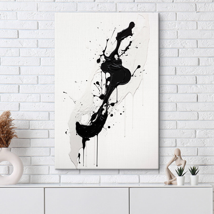 Această operă de artă nu este doar o pânză; este un dans jucăuș de alb și negru, împrăștiat pe o suprafață clară. Imaginați-vă că intrați într-o cameră în care această lucrare vă întâmpină cu explozii de creativitate și spontaneitate. Este ca și cum artistul ar fi aruncat o găleată de vopsea cu un ochi și ar fi spus: “Hai să ne distrăm puțin!” Perfectă pentru acel vibe minimalist sau pentru oricine caută o piesă statement. Invită la conversație – fiecare va avea propria sa interpretare. Fie că stârnește inspirație sau pur și simplu vă face să zâmbiți, aduce o energie răcoritoare în orice spațiu. Un pic de haos poate fi o modalitate încântătoare de a sparge monotonia, nu credeți?
