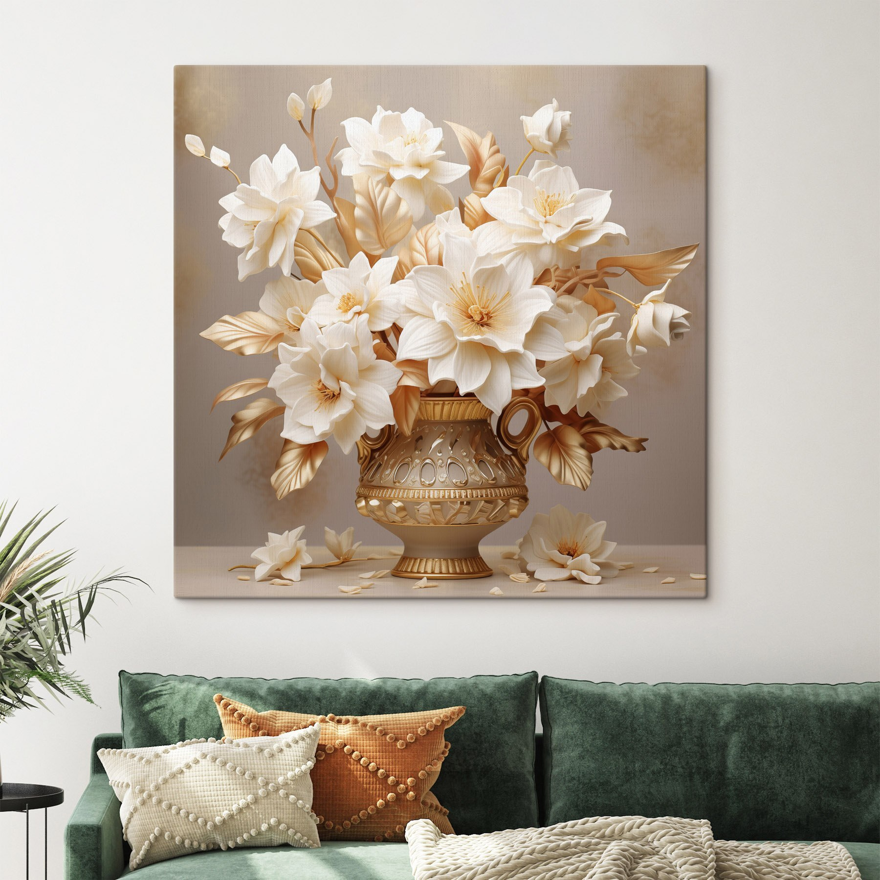 Înveseliți orice cameră cu această imprimare uimitoare pe pânză, care prezintă o vază minunată plină cu flori albe. Este ca o gură de aer proaspăt pentru pereții dvs., invitând o notă de natură în interior fără agitația udării! Imaginați-vă dimineți confortabile cu lumina soarelui pătrunzând prin fereastră, eleganța blândă a acestor flori aducând un vibe senin care face ca totul să se simtă puțin mai luminos. Perfectă pentru camera de zi sau pentru acel perete gol din hol, această piesă poate stârni bucurie și poate chiar câteva complimente. Este o artă care nu doar rămâne în jur, ci înveselește cu adevărat locul.