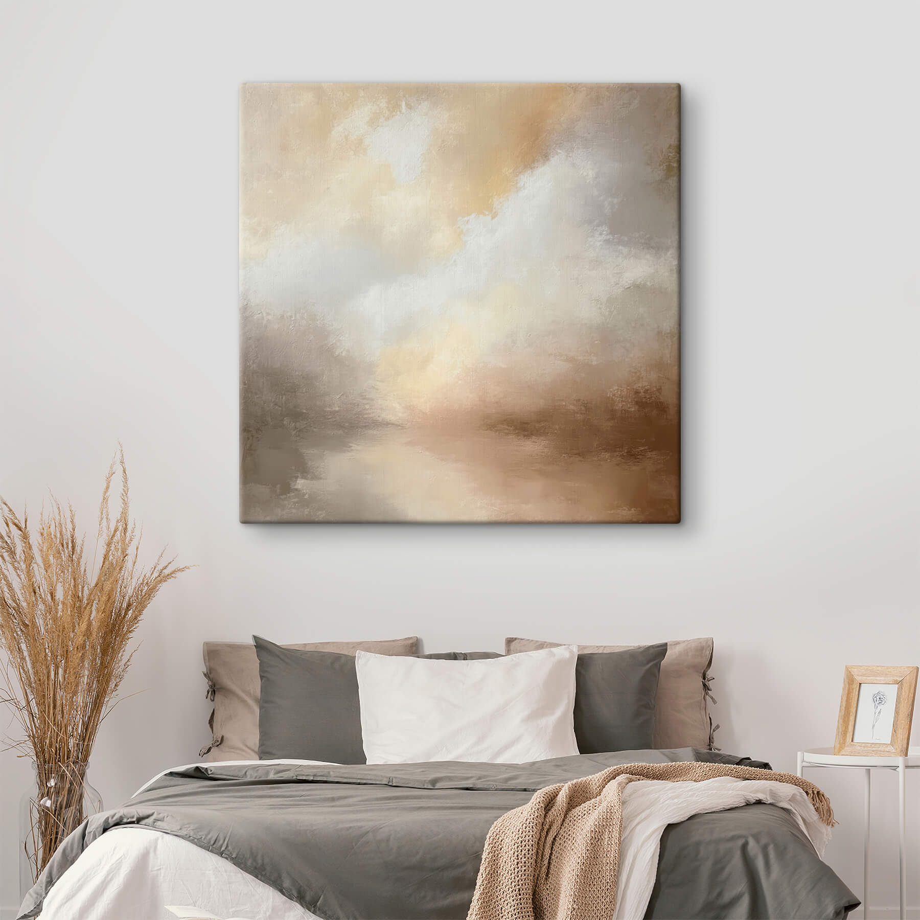 Această imprimare pe pânză se simte ca o îmbrățișare caldă pentru orice perete. Imaginați-vă că intrați într-o cameră și sunteți întâmpinați de nori moi, învârtiți de nuanțe blânde care calmează instantaneu sufletul. Este ca și cum ați prinde apusul de soare în timp ce vă sorbiți ceaiul preferat – fericire pură. Această pictură surprinde esența unui peisaj liniștit, invitând la visarea cu ochii deschiși a rătăcirii prin câmpuri senine sau a privirii în infinit. Perfectă pentru un colț confortabil sau pentru un perete de inspirație, ea adaugă o notă de liniște vieții de zi cu zi. Cine nu ar dori să se bucure de puțină seninătate zilnică? Perfect pentru oricine apreciază arta care vorbește încet, dar puternic!