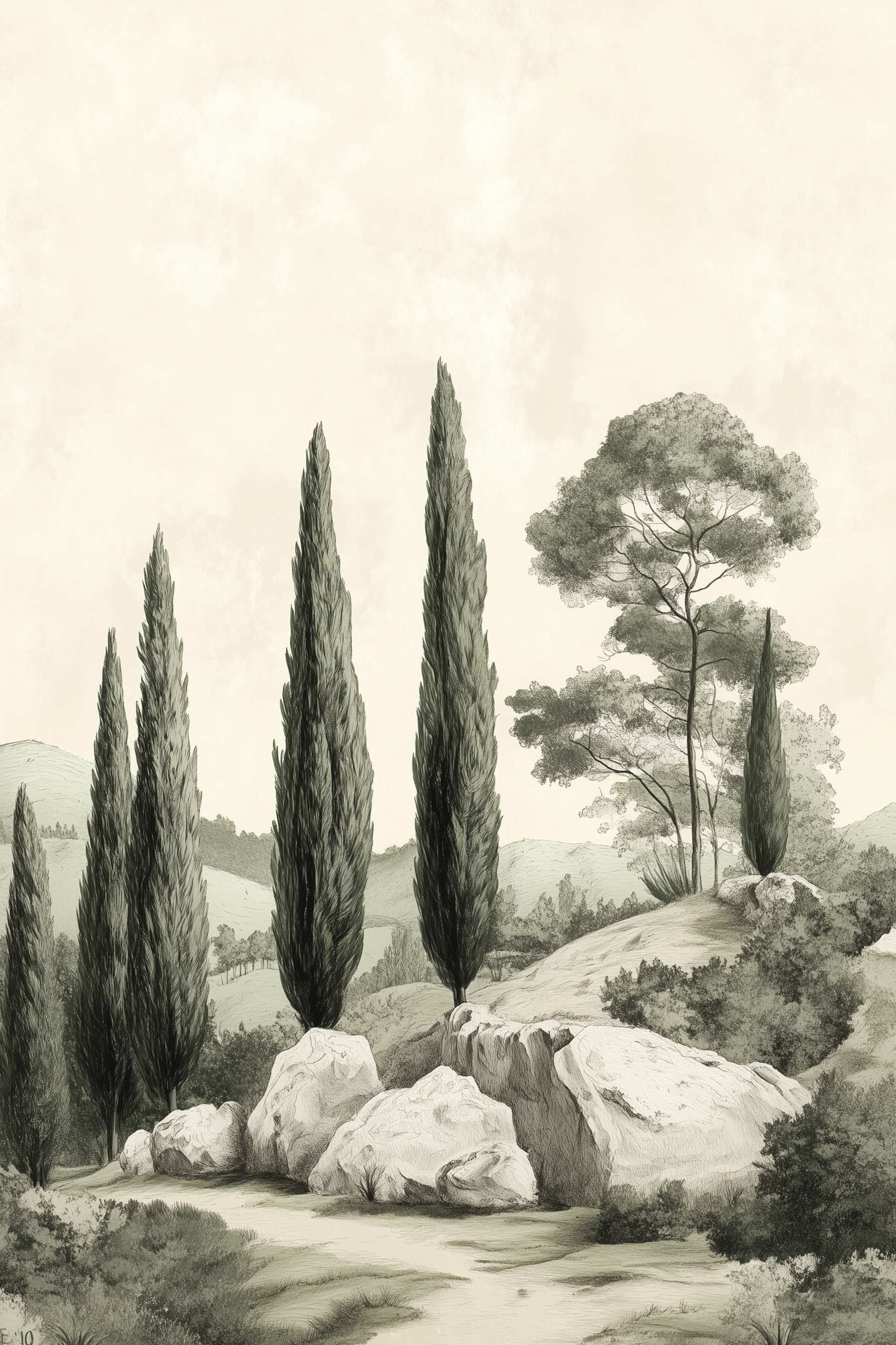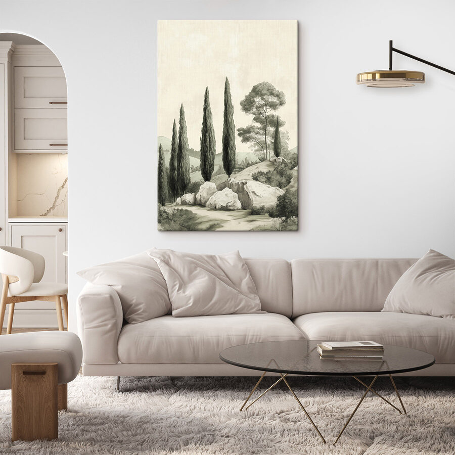 Aduceți o notă de natură în interior cu această imprimare uimitoare pe pânză a unui grup senin de copaci pe un deal blând. Tonurile de alb și negru creează o atmosferă clasică, adăugând un sentiment de calm în orice cameră. Imaginați-vă sorbindu-vă cafeaua de dimineață, privind acești copaci înalți și eleganți care par să șoptească povești din trecut. Este ca și cum ați avea o bucățică de aer liber chiar lângă dumneavoastră. Perfectă pentru cei care apreciază simplitatea și doresc să inițieze conversații despre minunile naturii. Această piesă este o amintire fermecătoare a faptului că frumusețea nu constă întotdeauna în culoare – uneori, este vorba despre formele care captează imaginația.
