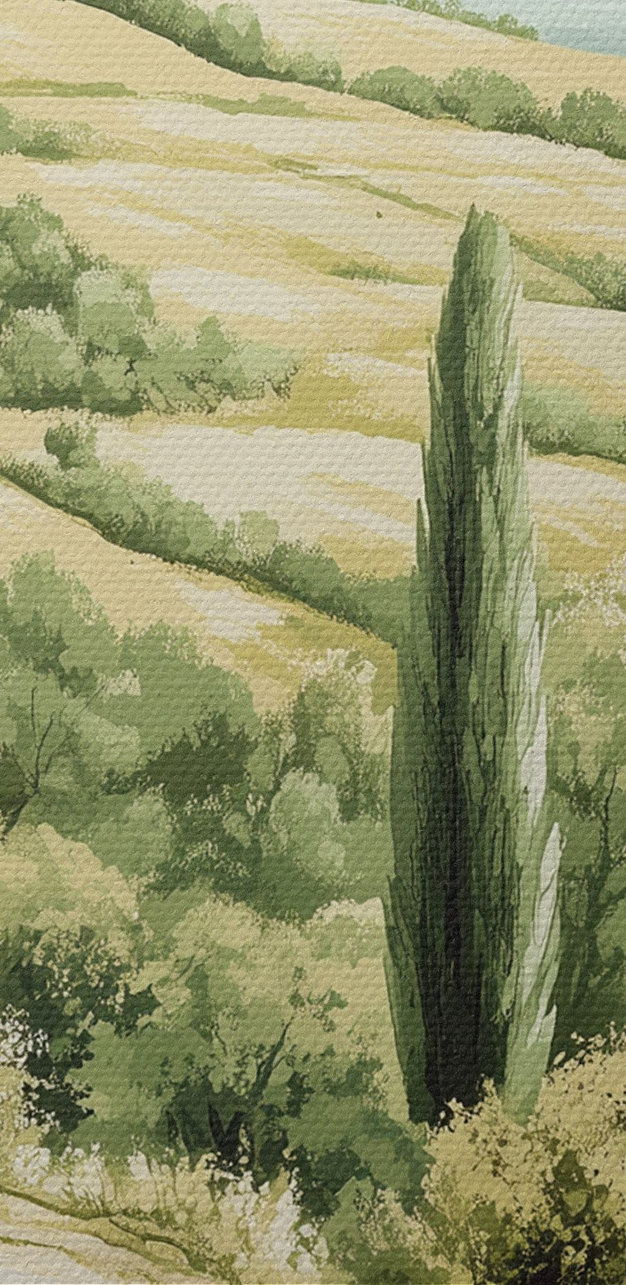 Transformați orice perete într-o evadare senină cu această imprimare uimitoare pe pânză cu copaci luxurianți și dealuri. Imaginați-vă că stați pe spate, cu o ceașcă caldă de ceai în mână, în timp ce acest peisaj liniștit vă face să vă simțiți ca și cum v-ați plimba printr-o țară blândă. Acei copaci înalți și grațioși stau ca niște santinele prietenoase, invitându-vă să visați cu ochii deschiși la după-amiezi leneșe și brize blânde. Este perfect pentru o cameră de zi confortabilă sau un dormitor liniștitor. Frumusețea naturii este doar la o privire distanță, inspirând zâmbete și vibrații liniștite de fiecare dată când atrage privirea.